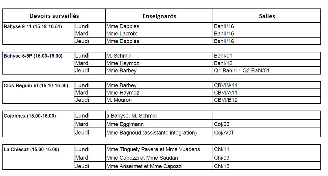 Les devoirs surveillés, financés par la Commune de Blonay – Saint-Légier, offrent un environnement structuré et supervisé qui permet aux élèves de développer progressivement leur autonomie en gérant leurs tâches scolaires de manière indépendante.